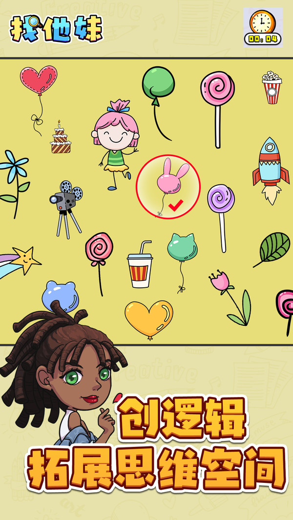 《找他妹》这是一款寻物游戏,天天来找茬,且非常经典的益智休闲手游。玩家需要在给定的时间和游戏场景内根据所给的提示找到相关的图片,是一个需要手,眼,脑相互协调配合的游戏。游戏中还设计了许多玩法:学习模式可以帮助玩家更快的适应经典玩法中图片的具体属性。无尽模式则能够展现玩家极致的手眼脑结合的能力。还在犹豫什么,赶快来试试吧!