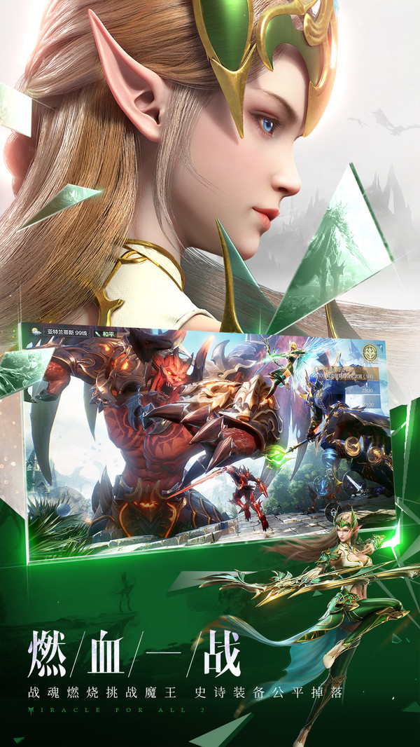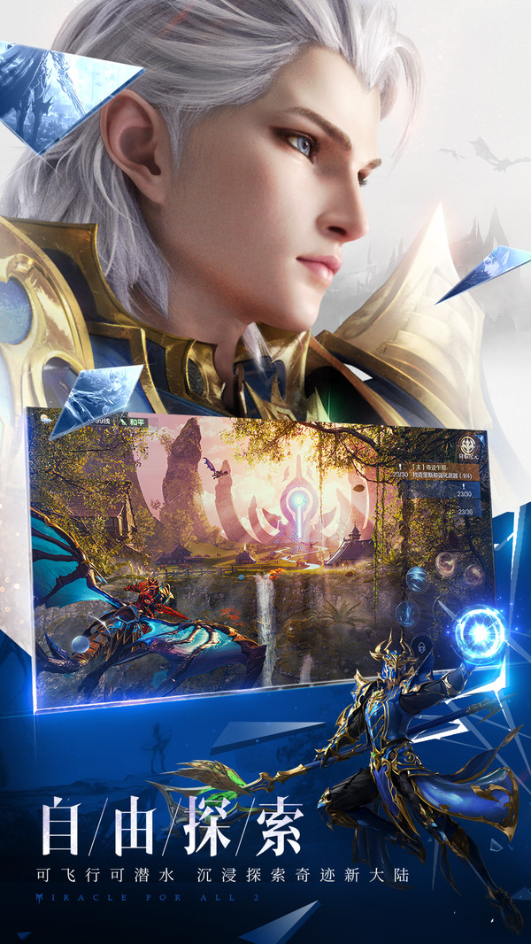 全民一起玩,才是真奇迹!《全民奇迹2》是一款腾讯旗舰级魔幻华丽手游。穿梭在UE4引擎演绎的华丽魔幻大世界里,身临其境般的沉浸体验。去感受,乘风翱翔展翅冲刺,掠过水面疾行在汹涌波涛中,体验海陆空三栖的无束缚探索;去战斗,具有魔法韵味的炫目技能,让每一次战斗都变成一场视觉盛宴;去成长,享受独特铠甲美学和流光羽翼的绚丽魅影。在这里,一起解禁你的无限魔幻想象。