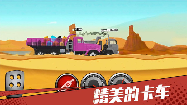 你有机会尝试各种强大的车辆和卡车,他们各自拥有自己的驾驶特色。 开启所有地图!在森林、沙漠与采石场中体验越野的感受! 证明你才是最厉害的坡道车手!