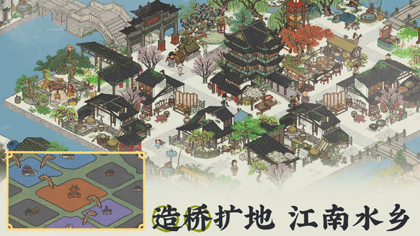 结合江南水乡特点,在不同城市打造不同风格,解锁专属建筑。