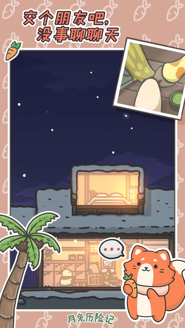 月兔历险记》是一款小清新画风的佛系模拟休闲养成类游戏。玩家将跟随月兔的脚步,从大城市回到乡下蘑菇村里爷爷留给他的胡萝卜农场中,体验乡村生活以及种植胡萝卜。