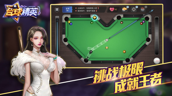 闯关模式难度逐渐递增,逐步提升桌球技巧,上百个关卡供你挑战,让你从门徒成就王者!