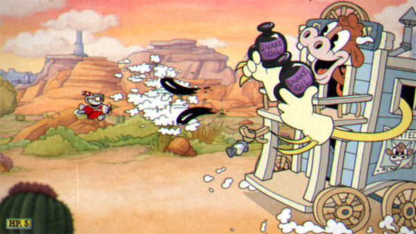 另外,茶杯头大冒险不仅在角色上有巧妙设计,而且每场 BOSS 的背景画面也是经过了细致的制作,比如在和“阿拉丁+法老+冒牌茶杯头”的猥琐 BOSS 战斗时,背景是被黄沙围绕的古埃及建筑群,故意做旧的画面非常富有年代感,同时游戏加入了技能要素,通过收集部分关卡中的金币,在单眼猪的商店内可以购买各种不同的技能来强化茶杯头,茶杯头的每个属性都有可强化要素,这在一定程度上允许玩家打造自己特别的茶杯头,针对不同的 BOSS 也可以选择武器来对付他们,喜欢这种简单风格的玩家不容错过。
