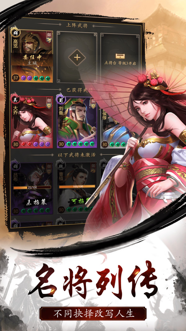 这是一款三国模拟经营+卡牌养成+轻roguelike剧情的游戏。 这里有传统的一统三国的单机主线,主线玩法偏佛系,只需要攻打npc城池而不用担心因主城忘记开罩一觉醒来就被洗劫一空的情况出现。在主线征讨的过程中,也会有丰富的随机事件出现。 除通过武力征伐实现统一外,游戏最重要的玩法则是需要努力经营来发展自己的城池(经济科技等实力),朝堂之内需委任内政文官参与城池建设,宫殿之外则需任命武将为太守保一方安宁。