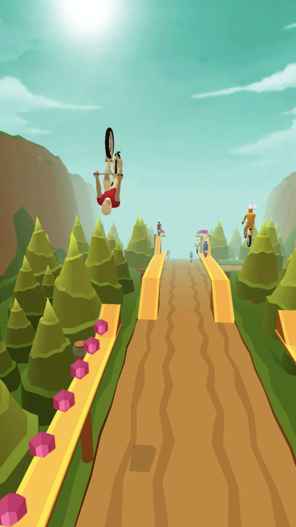 自行车冲刺游戏是一款驾驶竞速比赛的冒险动作类游戏,你将成为一名优秀的自行车驾驶赛事车,你需要完成各种不可思议的挑战,冲上坡道飞向空中展现你的特技,慢动作的展示非常的炫酷刺激,在精彩的动作表演中还需要灵活的收集更多的金币,你可以解锁更多的角色和自行车。游戏里面拥有40种不同的型号的自行车可以任意的选择,还可以选择不同的赛道跟自定义你喜欢的赛道。
