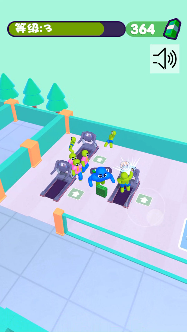 暴走健身房是一款解压经营游戏,肌肉猛男通过自己几年的积蓄开了健身房的店,引进了各种器材(跑步机、举重等机械器材),在这全民健身的时代,健身房已经无处不在,但是呢总有人健完身却不离开,而是占着器材拍照发朋友圈秀身材!!我们健身老板怎么能够容忍这种事情发生,所以就雇了我来专门看管健身房的秩序,只要有人不健身,一直拍照就赶走他,你也快来帮我一起瞅瞅谁没有在好好健身!!!