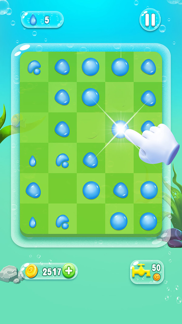 经典的益智小游戏,根本停不下来的连锁消除大作战! 一开始你有一滴水,点击最大的水滴会爆炸,上下左右会出现4个小水滴并向四周扩散, 与周围的水滴相撞会融合,并使周围的水滴变大或者再次爆炸,你会发现很有趣的连锁反应。 过关标准: 使游戏界面上的所有水滴消失即可进入下一关. 操作技巧: 1.每局拥有不同的水滴数量。 2.用最少的水滴创造最大的连锁反应 3.我们应尽量让飞溅的小水滴去撞击大水滴,使其爆裂消失. 类似十滴水的经典水滴游戏,考验智商的时候到咯!