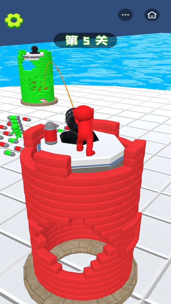 玩家开局拾取跟自己肤色相同的子弹道具来攻打对方城堡,率先攻破对方城堡的一方将会取得胜利,在后续的关卡中还会出现更多不同颜色的其它对手,在休闲益智的同时又增加了一定的挑战性,增加了游戏的趣味性。