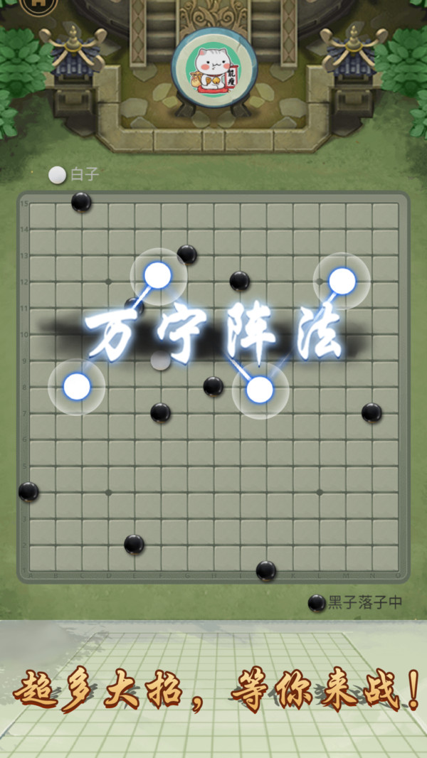 《万宁五子棋》在经典五子棋对局中增加了各式炫酷大招,让你体验到从未见过的全新五子棋。