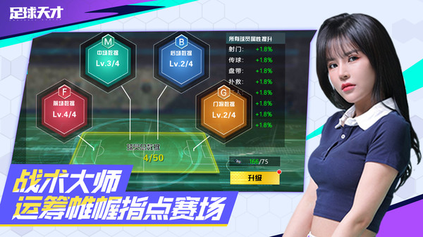 球员升级、突破,真实赛场数据实时同步,指尖见证球星成长。更有多样的球场策略、战术选择、阵型搭配等,体验不一样的足球魅力!