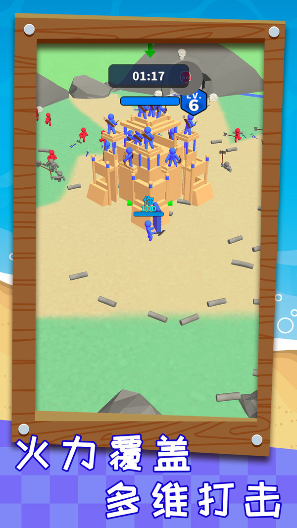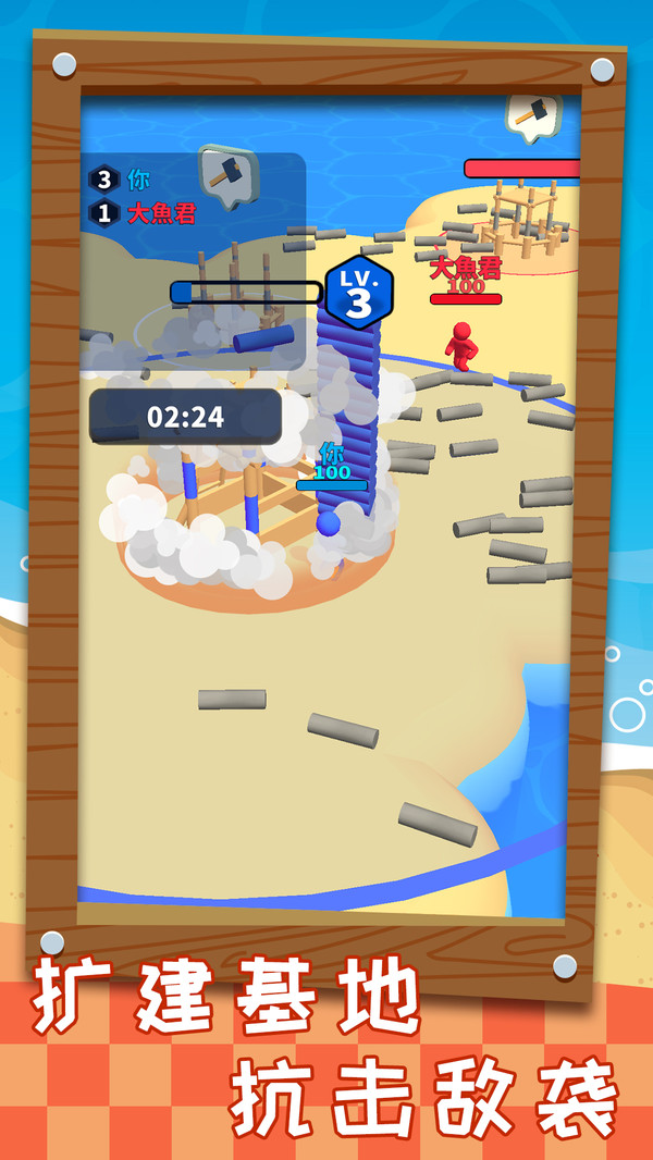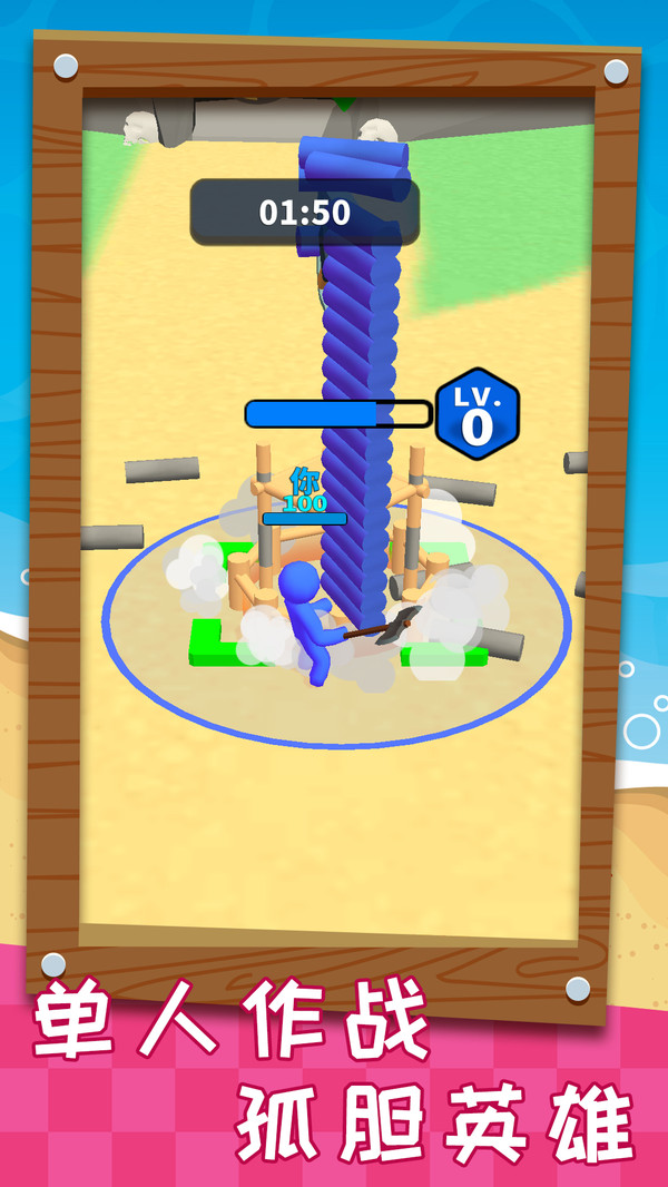 《搬砖之王》是一款有趣的休闲对抗游戏,游戏中玩家需要收集材料来升级自己的基地和炮台,收集的越多基地和炮台升级越快。开始时独自一人孤军奋战,在不断升级基地的过程中会获得越来越多的同伴!在整个游戏过程中玩家要时刻主要不被敌人抢占先机,在收集材料的同时要避开敌人的抢夺和攻击,最终击败对方! 游戏特点: 1、多样的元素设计,让游戏更具趣味性和挑战~ 2、有趣的对抗玩法,让你感受两方碰撞的火花~ 3、简单的游戏操作,轻松消磨时间的好帮手~