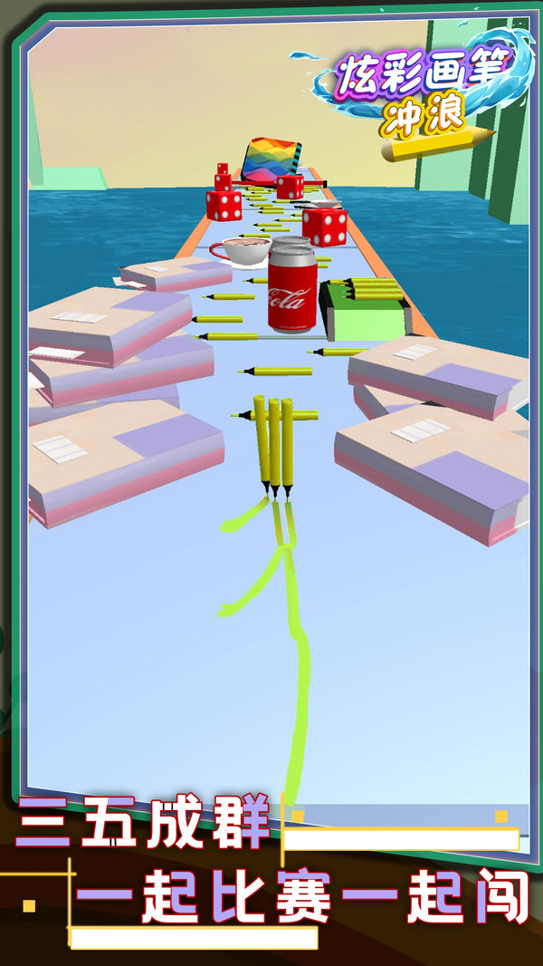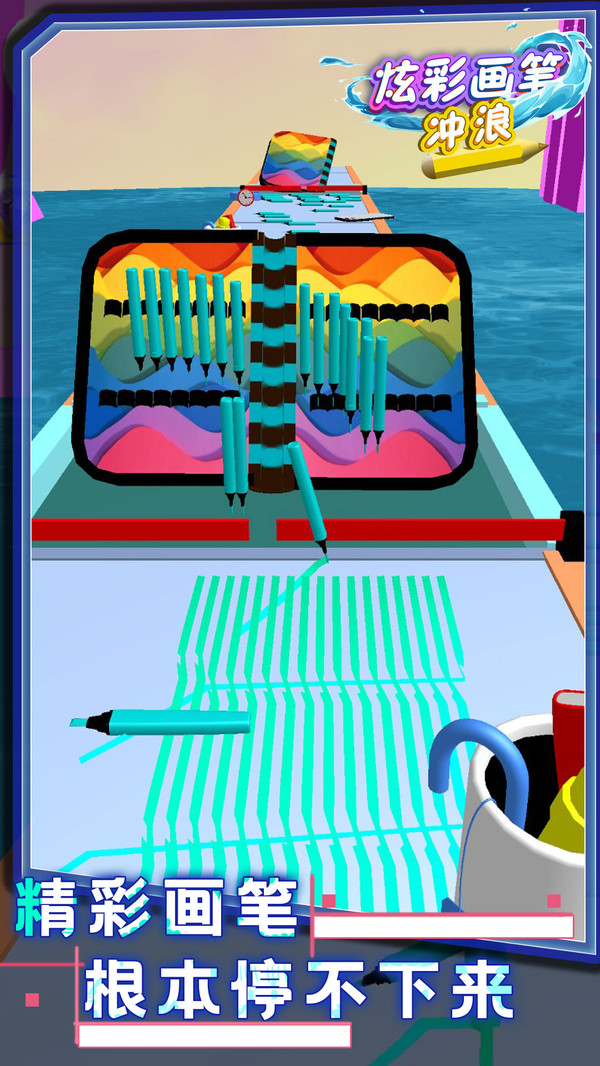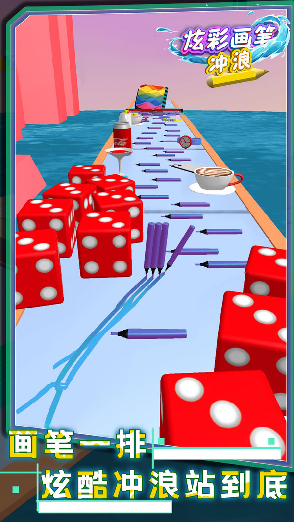 炫彩画笔冲浪是一款休闲创意的跑酷小游戏,玩家需要控制铅笔,再通往终点的道路上收集散落的铅笔,指尖轻触屏幕,控制彩色铅笔的方向,躲避障碍;路途有许多的障碍,需要玩家灵敏的反应能力,才能安全的到达终点。
