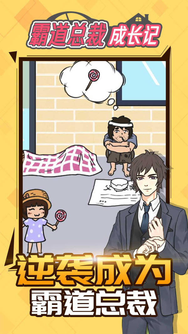 《霸道总裁成长记》是一款融入解谜、养成、搞笑等的各种元素的休闲趣味解迷游戏,美术风格清爽,又带轻松搞笑氛围;意外导致落魄的乞丐靠着各种意想不到的操作意外逆袭人生走上人生巅峰式的恶搞剧情,配合有趣的梗以及策划有趣的灵魂,让游戏中多了不一样的体验;多种玩法交错混搭使游戏变得更加有趣,丰富的装扮系统和秘书,更让人感受到游戏中富人随心所欲的不一样体验。 游戏特色: 1.落魄乞丐逆袭人生 2.人生起落不定的生活 3.有趣而又不失风度的梗 4.简单却又意想不到的结局 5.体验现实不一样的富豪快乐