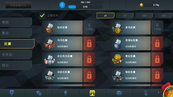 一款完全免费令人欲罢不能的开箱模拟器。开箱几率与真实游戏基本一致!龙狙,爪子刀,手套上千种皮肤纪念品等你来拿!考验你血统的时候到了,选择您的武器箱,然后开始开箱。即刻试试您的运气吧!