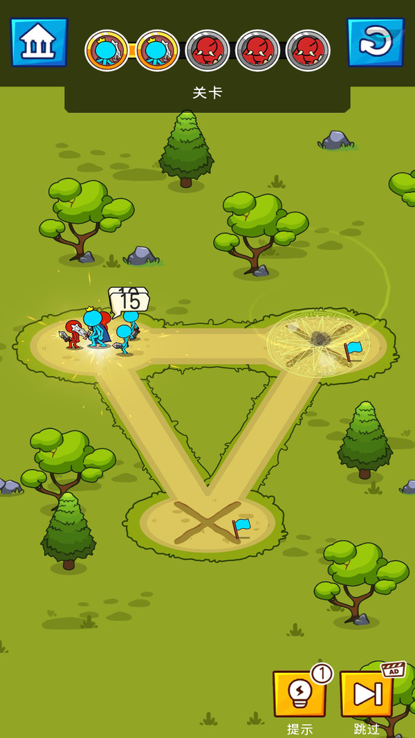 带领你的团队打败所有其他怪物,最重要的目标是杀死地图底部的怪物。计算跑步中的移动,并尽可能多地收集成员。