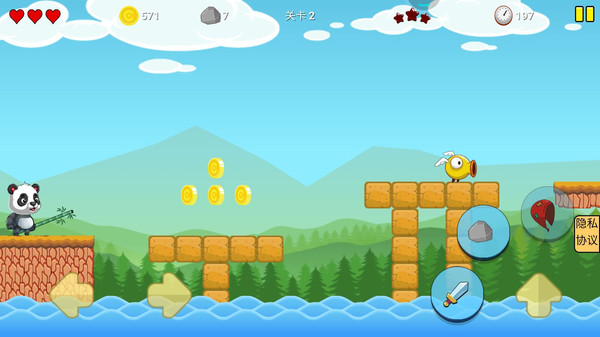倒霉熊被困在了高台上,逃离的唯一方法就是通过绳子荡出去。荡绳子一定要找好时机来控制荡起的角度和荡出去的速度,同时还要充分利用好带弹性的垫子。最后让倒霉熊冲过终点,他就得到了解救。