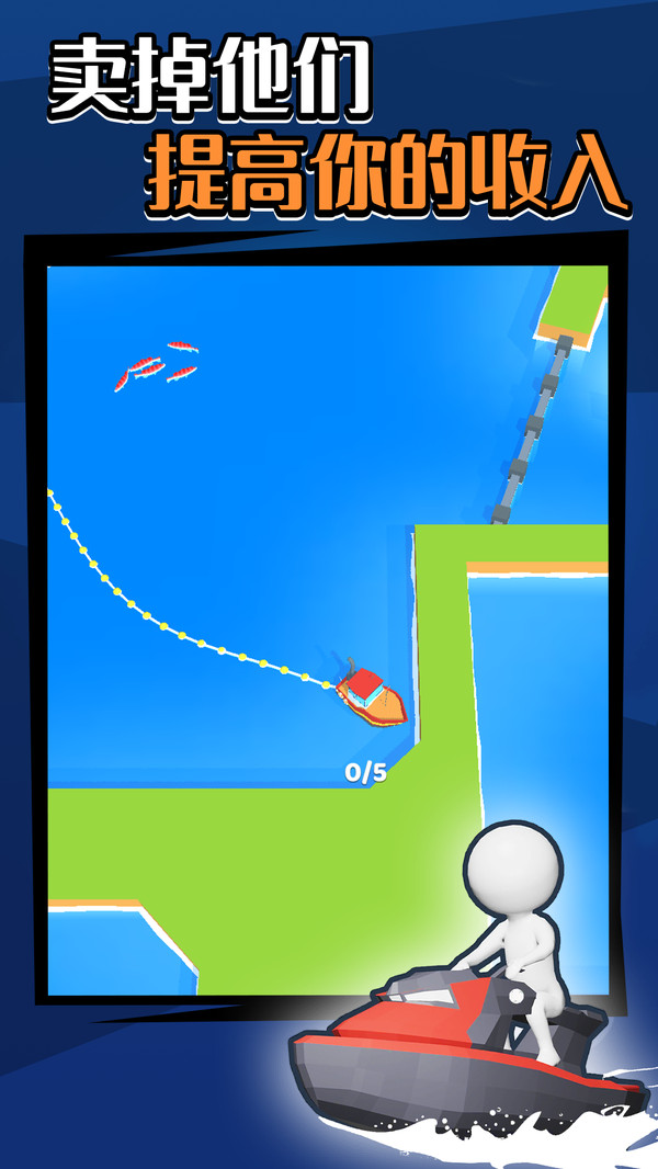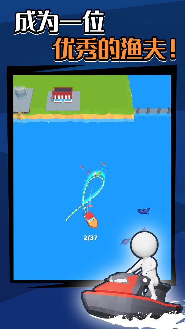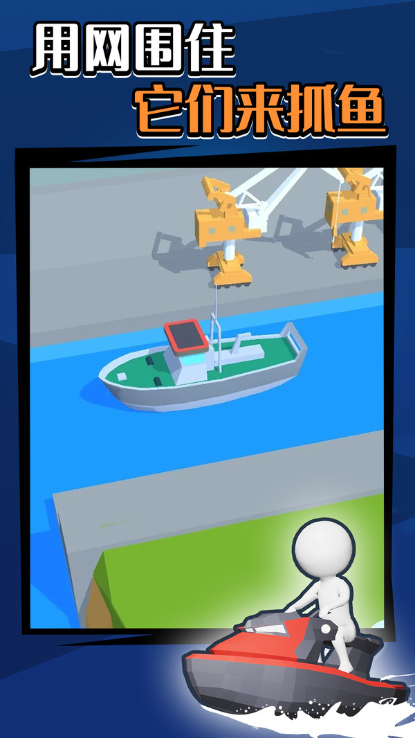 《圈网捕鱼》是一款独特的模拟经营放置类游戏,在圈网捕鱼中玩家能够进行真实的捕鱼体验,游戏非常简单,但是趣味性很强,游戏内容丰富精彩等待你来游玩。你需要使用渔网捕鱼,然后送到店里卖掉以换取其他资源;游戏图形效果简单,但很生动。继续升级,解锁更多有趣的玩法。一个盛产海产品的港口。可以开小船,拖着渔网捕鱼。用你的资源来解锁更多等待被发现和捕获的鱼,解锁大而昂贵的新水域。