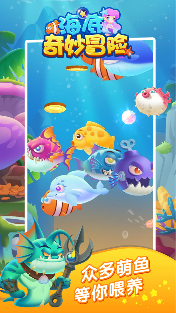 《海底奇妙冒险》是一款趣味海底养鱼休闲类游戏,在游戏中你可以在海底自由探索,解锁不同品种的鱼类。除了各种各样可爱的海豚,灯笼鱼,小丑鱼;你甚至还能养海蝴蝶,海龟等。同时还可以养育鱼宝宝,通过不同的喂养方式,孵化出珍惜海底生物~ 游戏特色: 1、画面清新可爱,超多生物,还可在游戏内可自由装扮属于你的海底小屋。 2、独特的游戏玩法,可悉心养育鱼宝宝,孵化获取珍惜海底生物! 3、游戏有许多稀奇古怪的鱼类,可爱的小海豚,腼腆的海蝴蝶,和电鳗等都在等着你喂养哦~