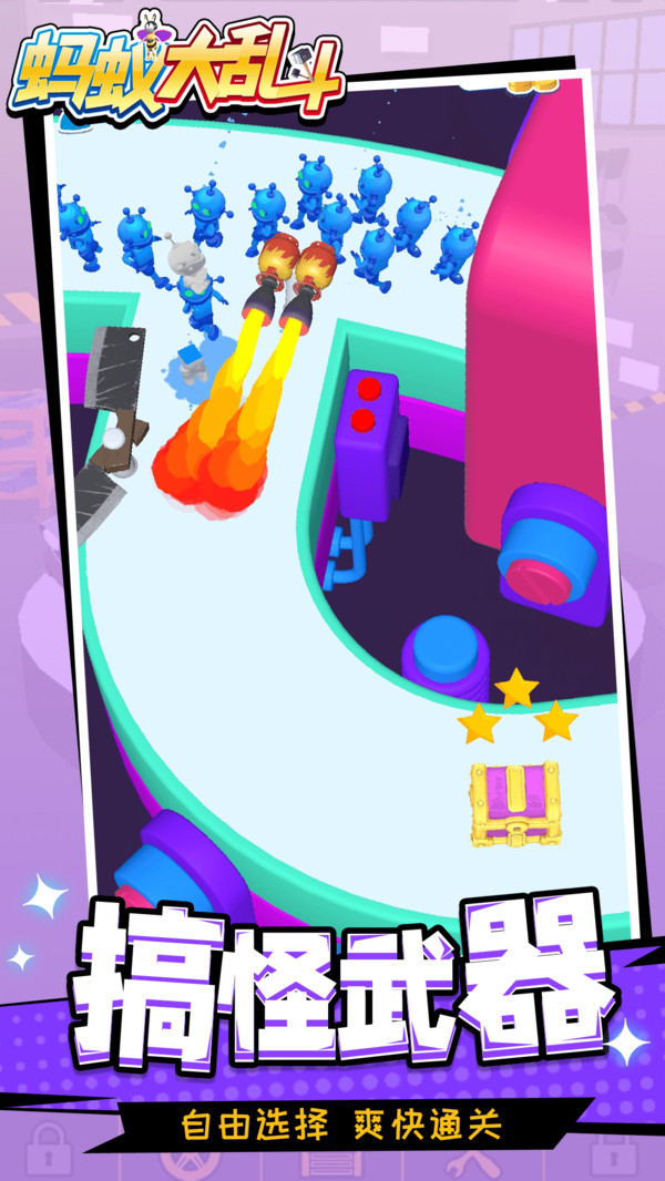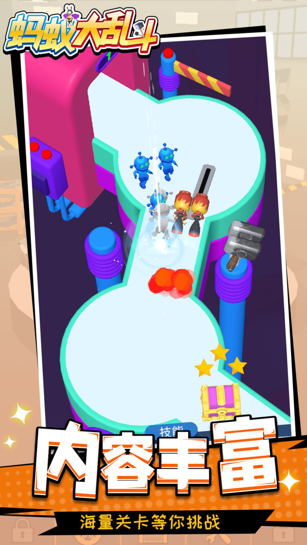 《蚂蚁大乱斗》是一款动作冒险闯关策略小游戏。游戏中会出现不同的障碍关卡,玩家需要躲避路上的障碍到达终点闯关成功,与此同时,玩家还可以给你的对手设下障碍物阻碍他们通关,看看谁才能够到达这最后的终点,成为人群之中最优秀的人。玩家还可以自由的建造属于自己的队伍,通过持续的召集让自己的团队更加的强大,吞噬比自己小的队伍从而增强实力。场景丰富多变,各种任务和关卡都在等待您挑战!