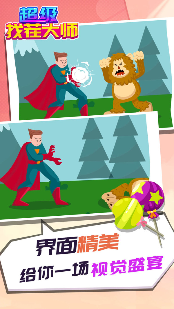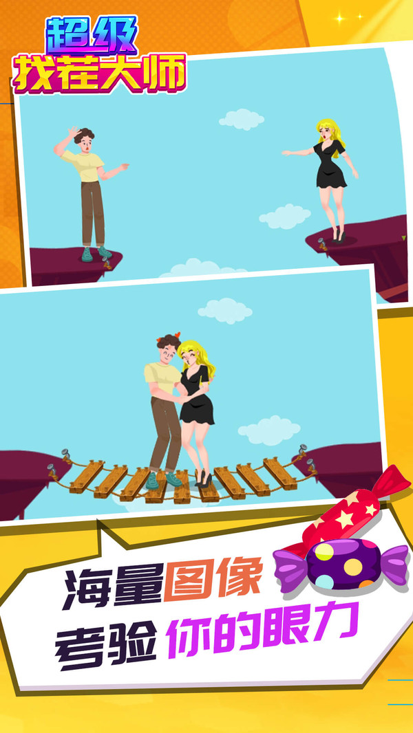 《超级找茬大师》是一款休闲益智解谜的游戏。玩家将在游戏中面临很多的关卡可以去挑战,每一个关卡都是很有趣的题目,玩家需要发挥出自己的脑洞,成功的解密,游戏内置了很多的关卡,遇到难题也会有一些提示是可以用的,玩起来非常的有趣,在不断的闯关过程之中去提升自己的个人思维能力。通过自己的努力去解锁更多脑筋急转弯内容,不断的挑战自己的操作以及大脑,全新的大脑思考体验等待着你。
