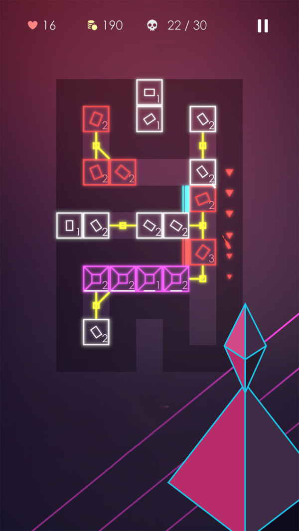 游戏采用抽象的霓虹灯矢量极简风格。它将适合喜欢玩轻松休闲游戏的休闲玩家的口味。整洁的霓虹灯矢量风格、令人愉快的设计、流畅的游戏体验和大气的背景音乐将让您更加沉浸在塔防世界中。
