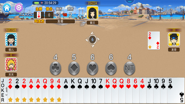 免费升级/80分/拖拉机游戏! 升级是一种流行于中国和海外华人社区的纸牌游戏,一般是四人参加,非常考验玩家的团队合作观念, 如果有良好的团队合作将让你更好的获得好的成绩。其目的是赢取分数、升级以获得胜利。升级游戏可以使用一副牌、两副甚至三到四副扑克牌。在不同的情况下,它有不同的名称:一副牌时也叫打百分、打40,两副牌时也叫八十分、拖拉机、打80、双抠、双升、升级。 这个游戏是八十分拖拉机的玩法。
