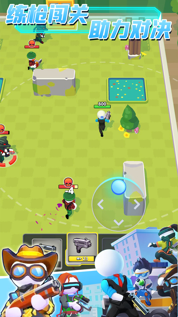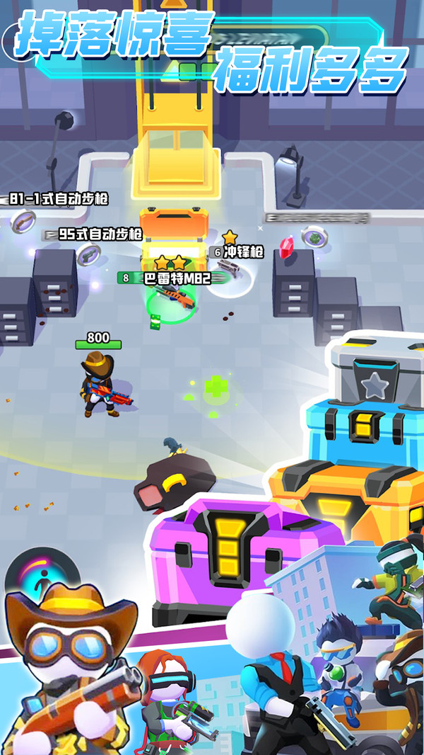 多种战斗模式一触即发,等待你的将是各种难度特色的刺激关卡,一路惊险过关。多人同场竞技,凭借战斗策略及射击能力勇夺冠军,力争胜利!