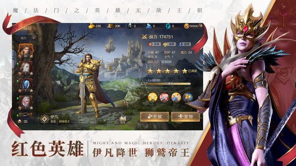 《魔法门之英雄无敌:王朝》是由育碧正版授权,龙图游戏自主研发并发行的一款经典战棋策略手游。游戏继承《英雄无敌》的世界观背景设定,高度还原了《英雄无敌》系列经典的地图探索、战棋战斗、主城建设、英雄养成、生物招募等玩法。在游戏中玩家将扮演一名领主,逐步发展壮大势力,与其他玩家组成联盟,协同配合,攻城略地,并肩征战亚山世界。