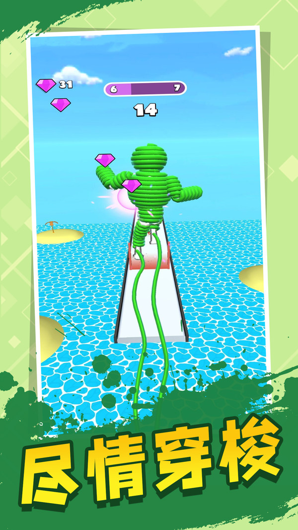 这是一款闯关游戏,由彩色线组成的角色,一路上你会遇到各式各样颜色的线,你要收集跟自身颜色相同的线,使其在关卡中生长与前进,不能碰到障碍物,否则失败,游戏有趣,操作简单,画面炫酷,是一款不错的休闲游戏。