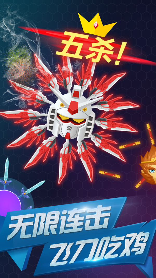 多人在线对决的设定让这个游戏在休闲之中又多了几分刺激,因为你不知道下一秒会遇见什么样的对手,只能默默的拾取飞刀,尽量壮大自己,但有时候采取有技巧的策略也能反败为胜,既休闲刺激,又考验策略!