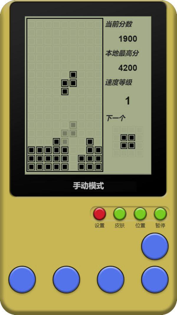 池塘边的榕树上,等等,还记得小时候玩过的俄罗斯方块游戏机吗?这款游戏完美还原了童年的游戏掌机,特有回忆感,操作简单,容易上手,让你回到童年的时光,怀旧的你,赶紧尝试一下吧!