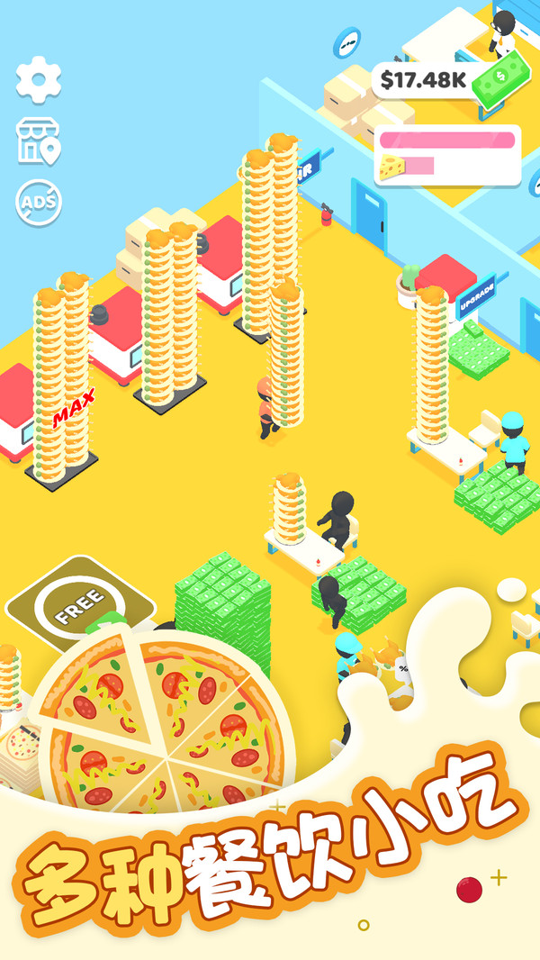 1.游戏设计了多种餐饮小店,除了披萨店,你还可以经营炸鸡、馅饼等。