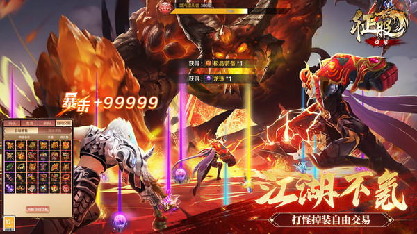全屏收割,满屏掉落,极品装备全靠打,开放式的游戏玩法,和兄弟一起称霸指尖江湖。