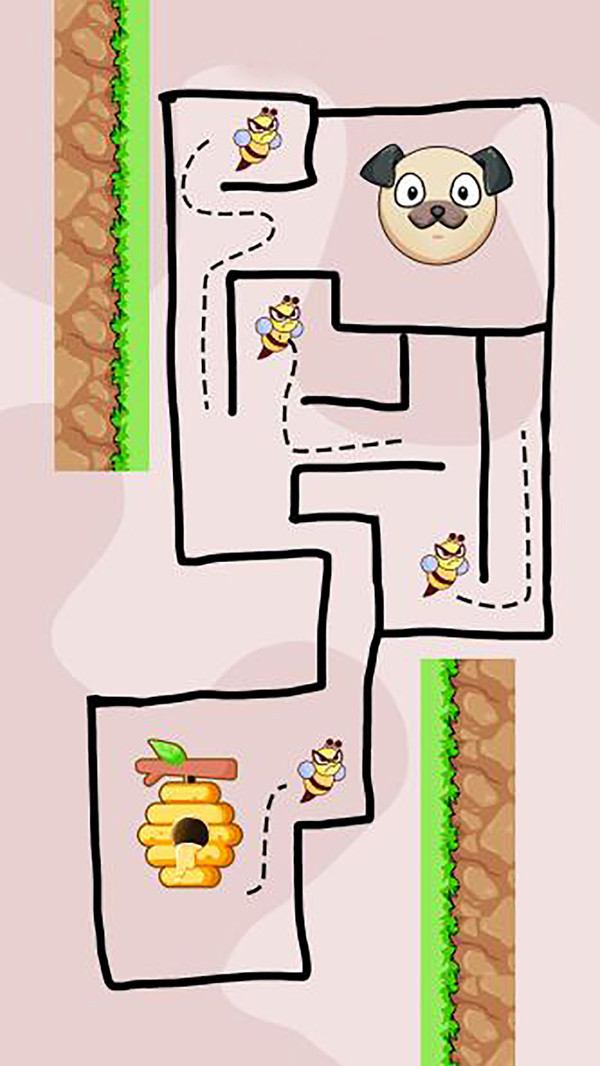 拯救小狗:宠物狗救援是一款精彩的大脑益智狗游戏,适合那些通过简单的游戏寻找令人上瘾、有趣和具有挑战性的东西的人。有数百种方法可以解决每个难题,只需在屏幕上画线来拯救可爱的狗! 点击以绘制一条线并从蜜蜂的攻击中拯救狗:按下以绘制您的线,并在完成绘图后抬起您的手指。确保您的线不会伤害您需要保护的狗。一个级别可以有多个答案:每个谜题的答案远不止一个。找出不同的令人惊讶的、有趣的、意想不到的,甚至是有趣的大脑拼图绘图解决方案!