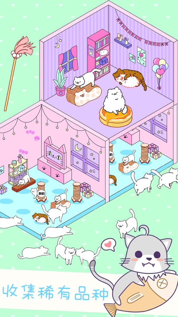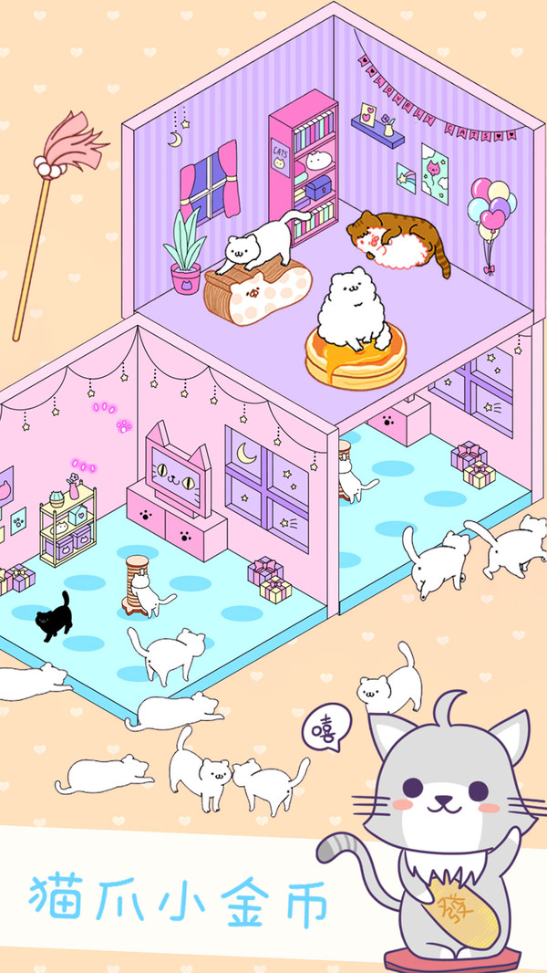 猫咪是一种可以治愈心灵的神奇动物,它可以在不言语间让疲惫的你感受到释放,感受到放松,很适合闲暇时需要放松心情,调节生活方式的你。 -用金币购买家具,合并相同的家具来得到一个崭新的家具 -放置在小房子里面,供猫咪们磨爪爪 -惊喜的小家具可以吸引稀有品种的猫咪出现 -猫咪磨爪爪的时候会产生金币 -升级到指定级别后会有很多小家具和小物件出现 -希望你也喜欢这些小可爱们,喜欢帮它们改造小房子