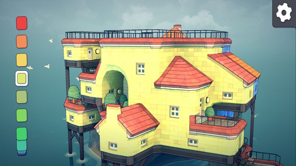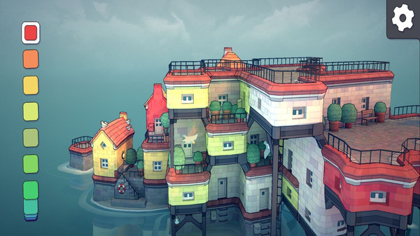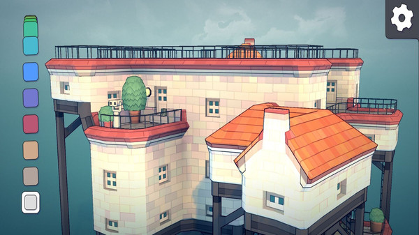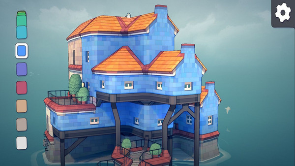 水乡江南小镇是一个实验性项目。与其说是游戏其实它更像玩具。我们可以从调色板拾取颜色,选个房子色块放在不规则的格子里,然后看水乡江南小镇的底层算法如何根据不同的配置自动地将这些色块变成可爱的小房子、拱门、楼梯、桥梁以及郁郁葱葱的后院。
