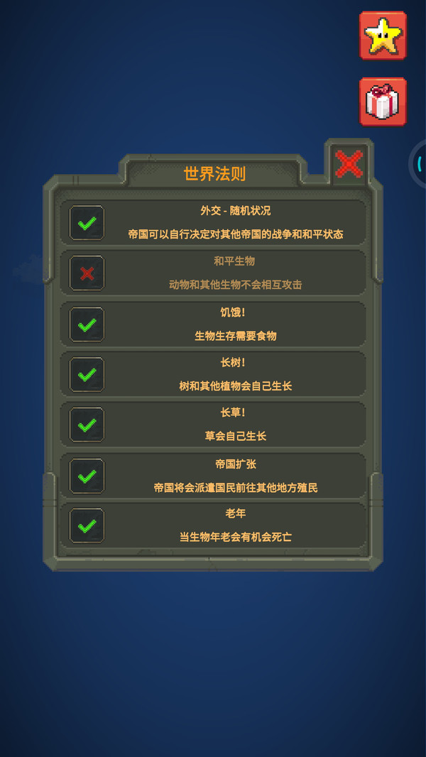 你是这个世界的创造者,你可以在这里随意使用任何手段;文明的诞生与毁灭在你的手中。要想控制生态平衡,就得尽量调整各种生存要素;