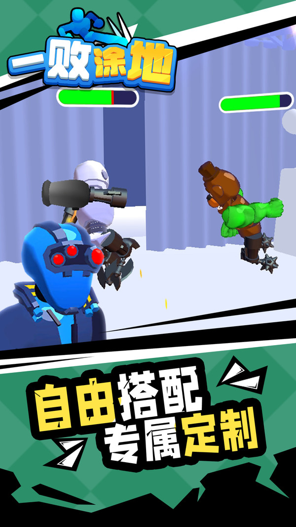 《一败涂地》是一款休闲格斗类小游戏。玩家需要用零件组装出战机甲人,并控制机甲人进行1vs1擂台对战,击败对手可获得巨额奖金可提升自己的机甲人零件及装备。自由战斗,体验刺激机甲人搏击,你准备好了吗?