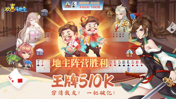 【王牌510K】主播力荐,人气爆款!超高倍率,一把能赢千亿豆!农民地主2v2,极品牌型搭配神队友,17张牌也能轻松秒!