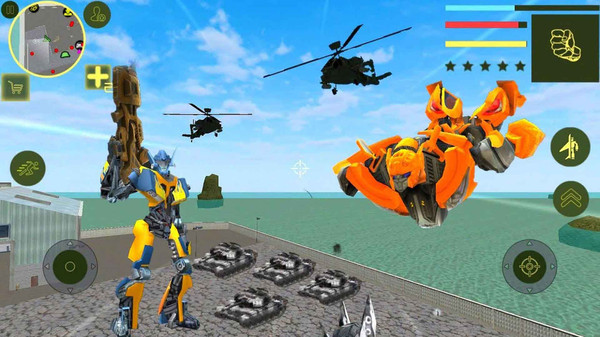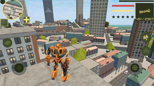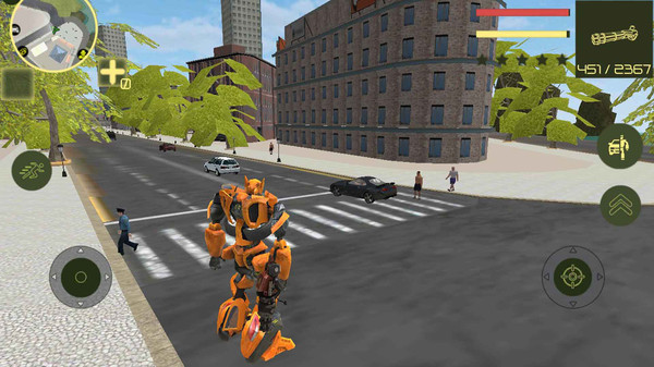 这是一款机器人城市冒险游戏,你可以变身机器人自有探索这座城市! 游戏中你可以选择自由或任务模式,打开地图就可以看到所有任务地点,完成任务可以获得大量奖励。除了常见的汽车机器人以外,游戏内还有飞机、坦克等十几种机器人,炫酷的外观,神奇的变形,就等你解锁了