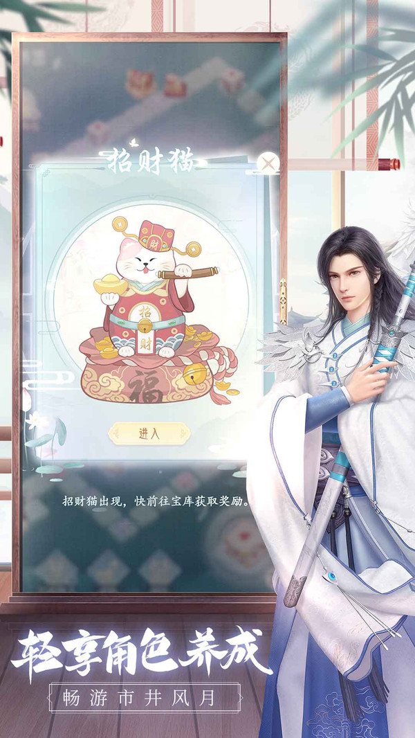 【模拟经营,专属府邸】在府邸内部、外院两大场景,你可以自由探索移动,随心搭配家具,摆设自己专属温馨寝殿,邀请做客、种植造景、鱼池垂钓体验不一样的盛世人生。