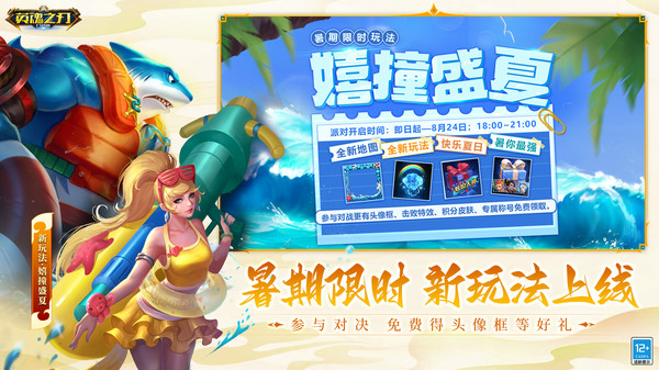 英魂之刃有纷争圣坛(经典5V5三路地图)、自走棋(六棱错峙,棋承万物)、决战之谷(单路大乱斗地图)、混沌遗迹(7V7抢占资源模式)、三方乱斗(三阵营对抗模式)、生存竞技、放逐峡谷(SOLO模式)等多地图选择,内含训练营、匹配、排位、无限火力、克隆大作战、战技巅峰等多种玩法;更有战队任务竞赛等更多挑战模式,赢得团队荣耀和海量奖励!当然,全新夏日限定玩法嬉撞盛夏也已经更新,两人一组,嗨翻盛夏!