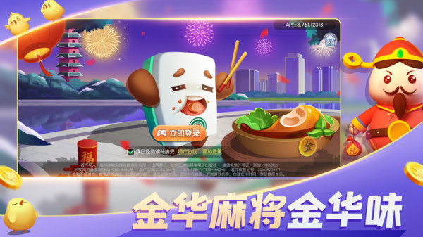 金华麻将流行于浙江金华一带,没有花牌,每局翻财神,白板替材神,可以自摸、捉铳、抢杠胡,具有简单、好“胡”、趣味高等特点