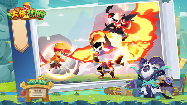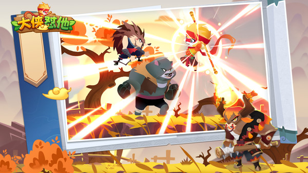 《大侠怼他》是一款画风精良的横版动作游戏。游戏中玩家扮演孙悟空的角色,在行走的旅途中遭遇黑熊、牛魔兽、野鸡等各类神兽的追击,通过击杀,技能解锁和升级等一系列动作消灭神兽,完成闯关大挑战,不断解锁新章节。