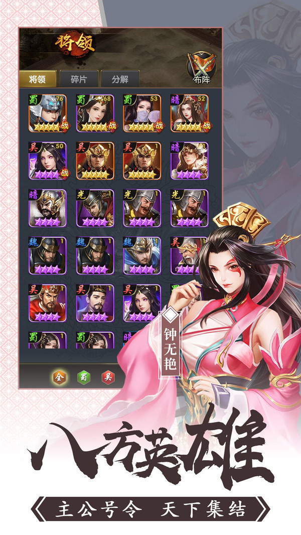 多种护肝设计祝你畅游三国,挂机玩法,推图扫荡更轻松。将士们各显神通,各种炫彩技能,随心搭配。