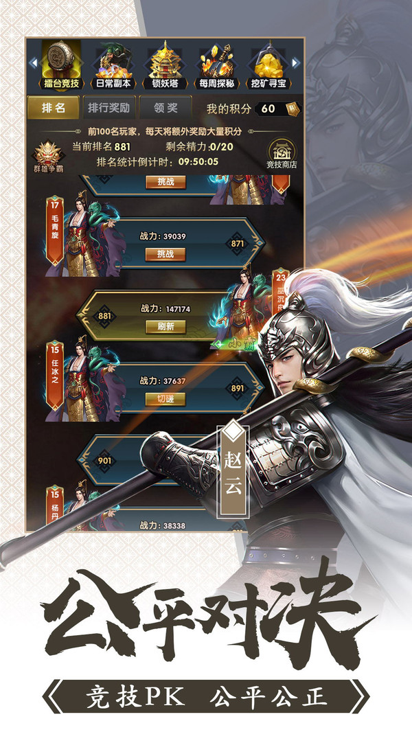 招贤纳士,炼制道具,打造宝物,培养武将,竞技PK,三国群英最终一统天下!