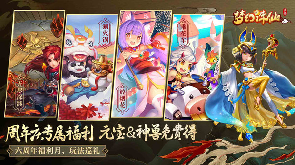 《梦幻诛仙》的各位少侠们大家好,梦幻诛仙怀6周年庆11月4日开启啦! 六载相遇,不负相知;携手共庆,奔赴山海。周年庆全新山海经异兽来袭,宿灵系统全新登场;年度跨服大型PVP赛事诛仙杯正在如火如荼进行中,“无尽深渊”等新玩法即将登场,更有绝版称谓以及专属神兽&魔兽免费获取哦,呼朋唤友庆盛世,跨服社交结良缘,让我们重温最纯最真的感动吧,这一回合,有你更精彩!