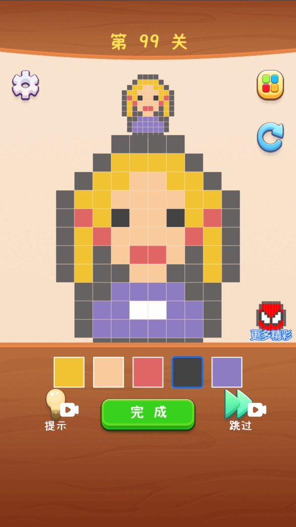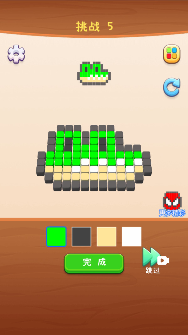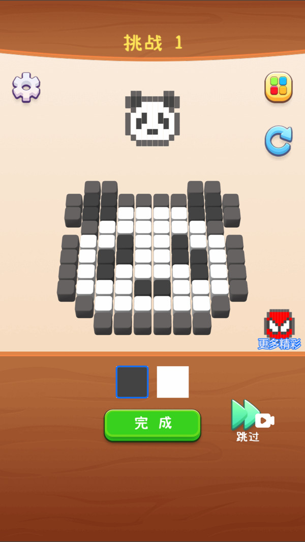 1,一款有趣的方块填色游戏,根据每个关卡的目标图进行涂色绘画,尽可能与目标图案一致并获得三星通关。 2,各种可爱的卡通动物人物形象等你来解锁。 2,游戏分为2D和3D两种表现,3D挑战关卡更有趣也更有挑战!
