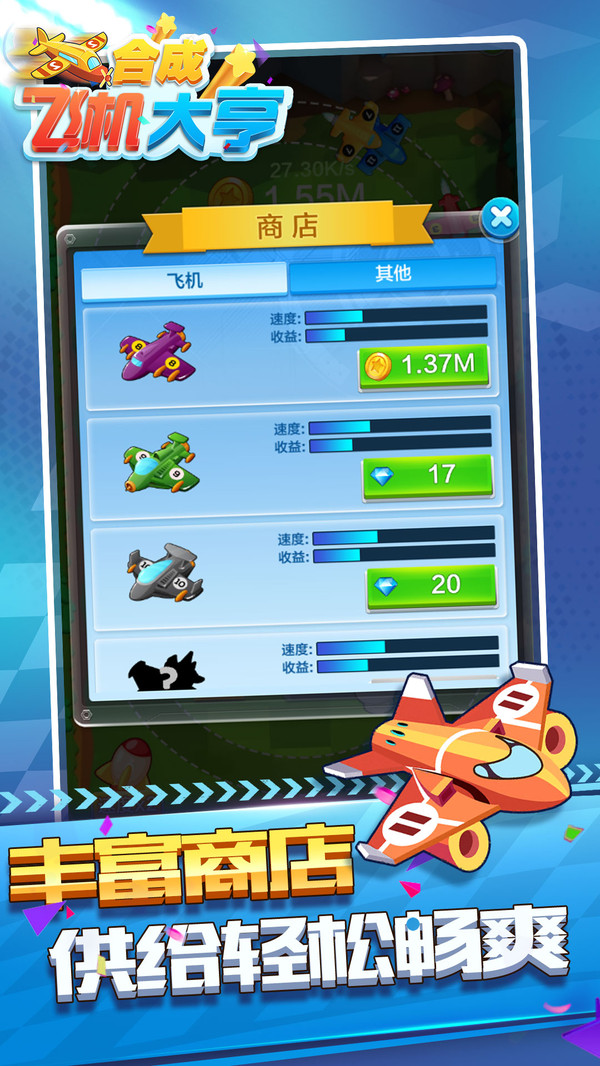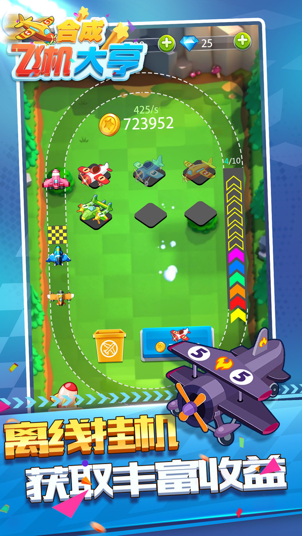 购买,合成升级和管理你的飞机。 让他们飞来赢收益!