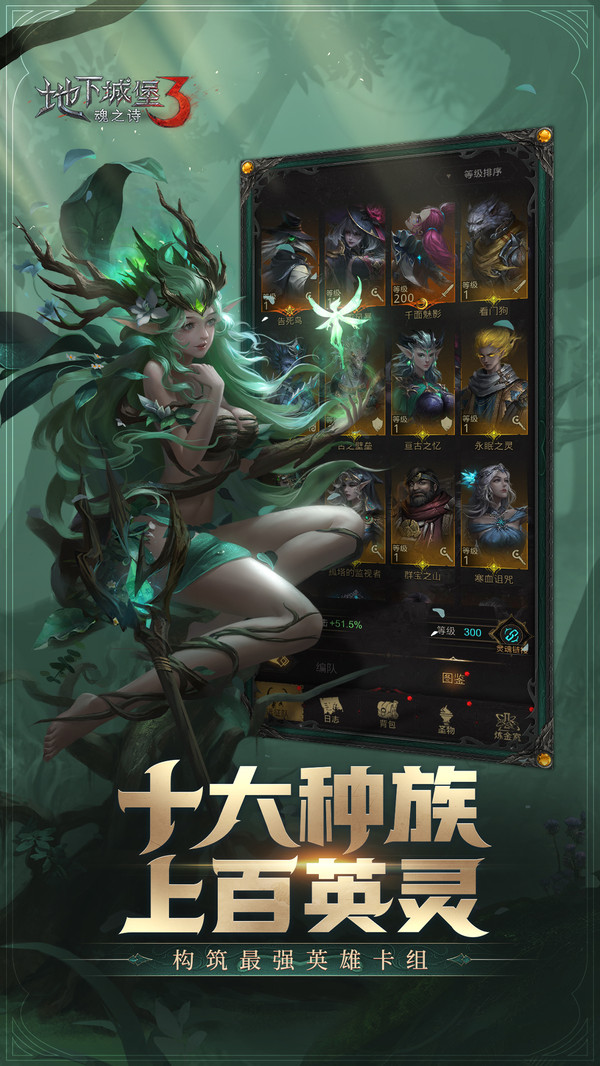 1、卡牌收集:十大种族,四大职业,高颜值英雄池持续扩充,有血有肉的角色故事